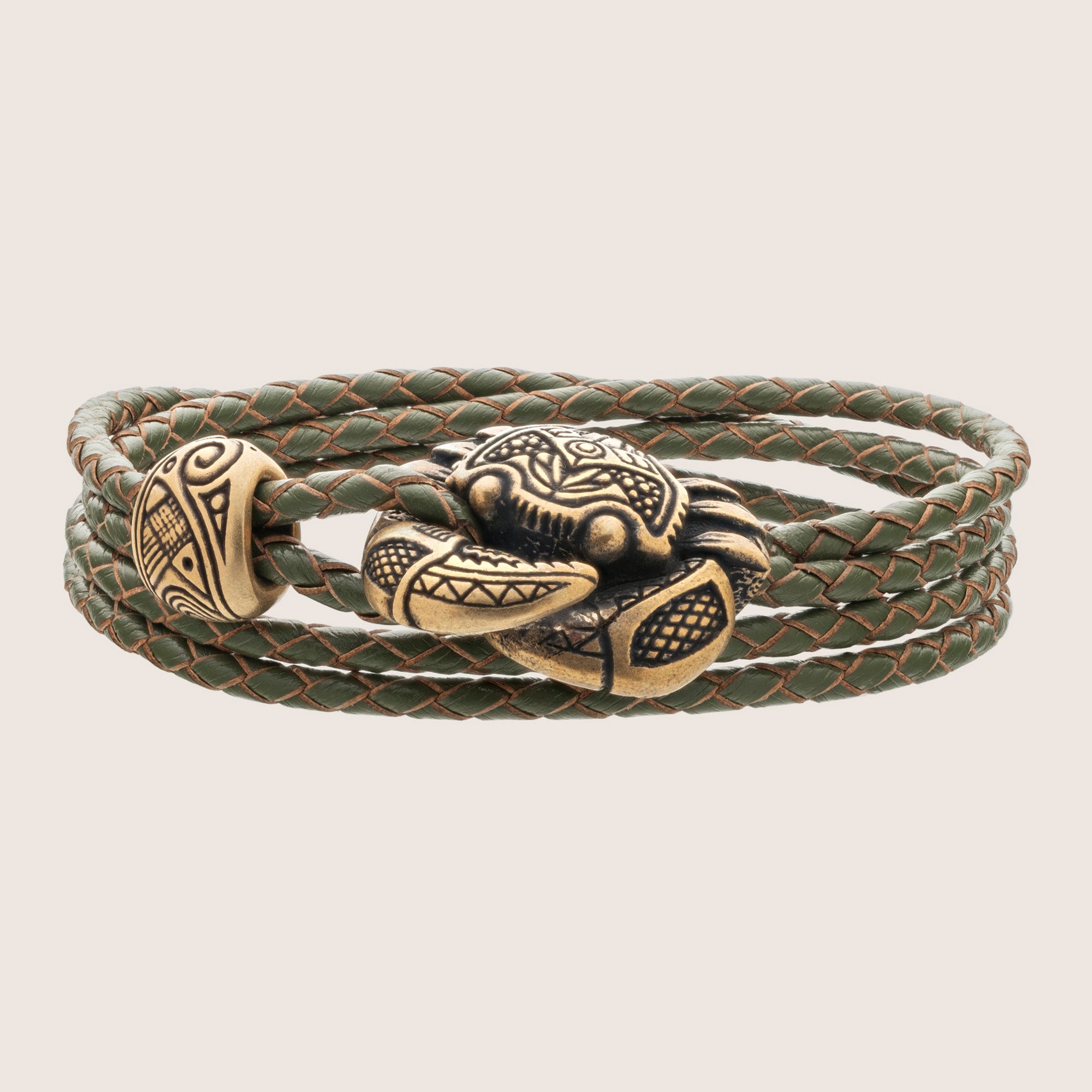 Crab Leather Bracelet – Handmade Bronze Ocean Tribal Jewelry