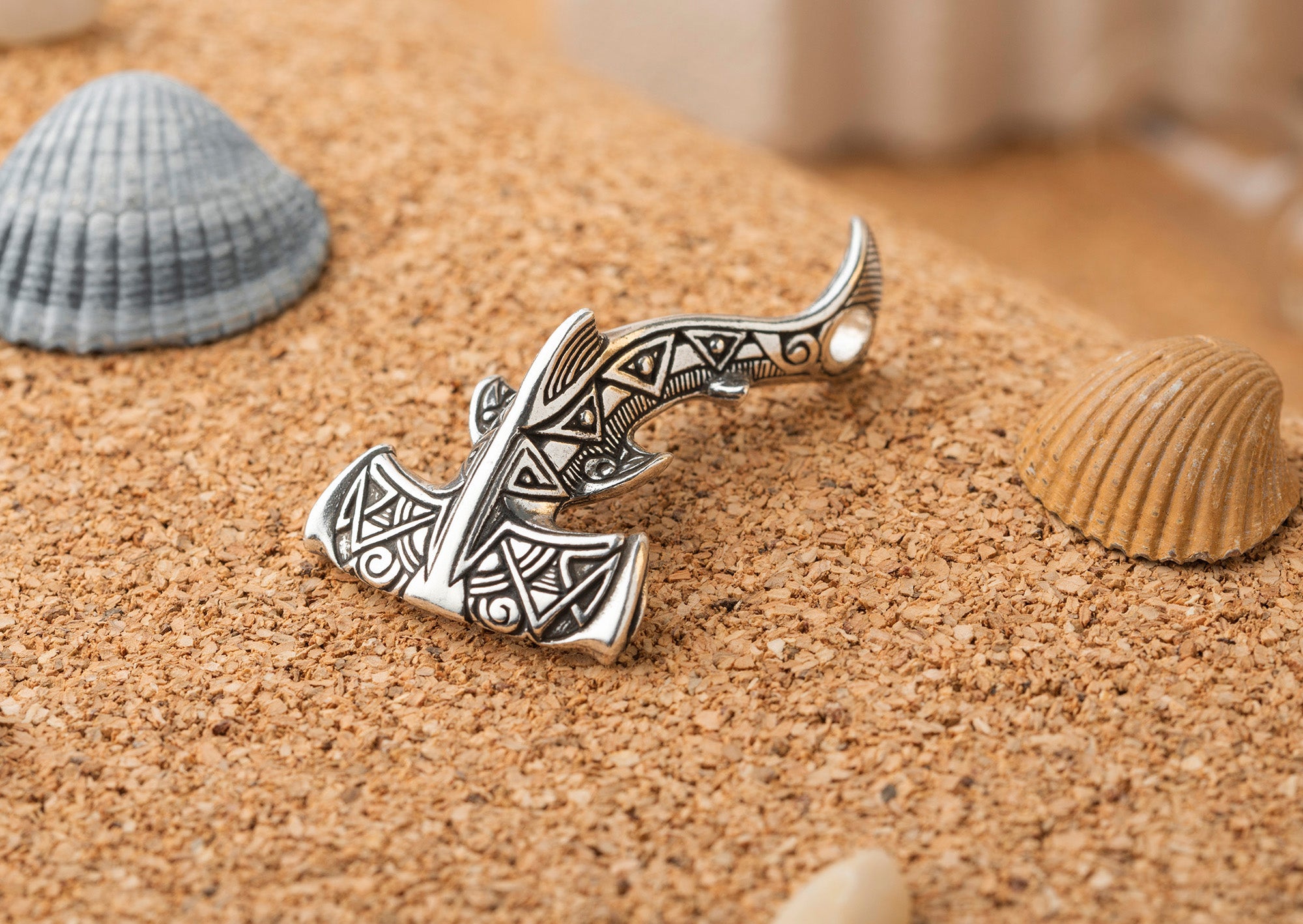 Hammerhead Shark Silver Pendant – Handmade Ocean Tribal Jewelry